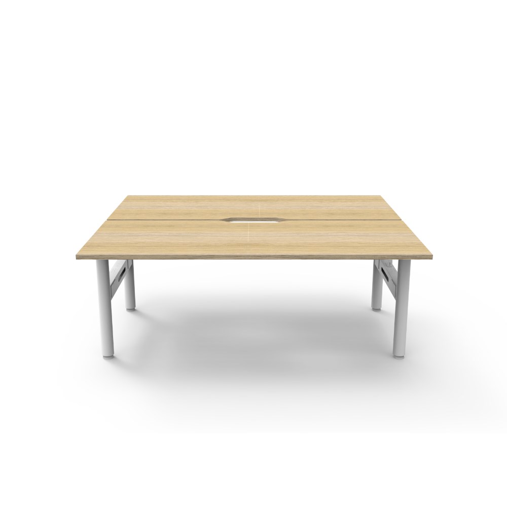 Natural Oak top White Satin frame. Overall Dimensions: 1800mW x 1500D x 730mmH. Per User Dimensions: 1800W x 750D x 730mmH. E0 rated 25mm top with rigid edging and 50mm diameter scallop cut out to rear. Powder coated underframe. Adjustable levelling feet. Can be customised with optional accessories like cable management solutions and privacy screens. 10 Year Manufacturer's Warranty. Delivery, installation and assembly charges may apply to furniture. Please enquire to confirm.