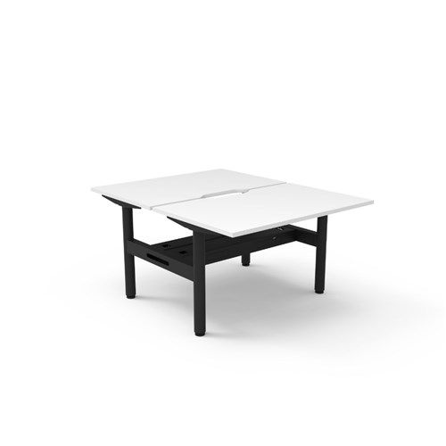 Natural White top Black Satin frame. Double sided workstation with cable tray. Overall Dimensions: 1200mW x 1500D x 730mmH. Per User Dimensions: 1200W x 750D x 730mmH. E0 rated 25mm top with rigid edging and 50mm diameter scallop cut out to rear. Powder coated underframe. Adjustable levelling feet. Can be customised with optional accessories like cable management solutions and privacy screens. 10 Year Manufacturer's Warranty. Delivery, installation and assembly charges may apply to furniture. Please enquire to confirm.