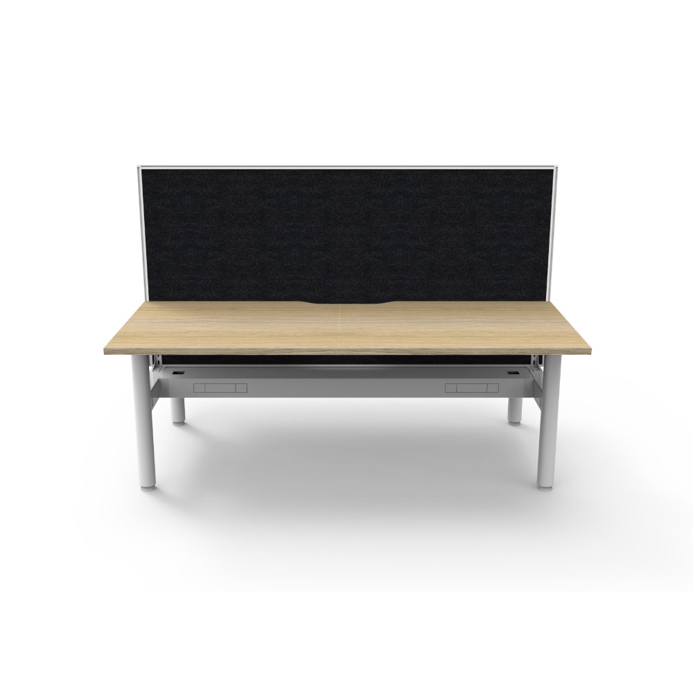 Natural Oak top White Satin frame. Double sided workstation with screen and cable tray. Overall Dimensions: 1800W x 1500D x 1330mmH. Desk Per User Dimensions: 1800W x 750D x 730mmH. Height With Screen: 1330mm. E0 rated 25mm top with rigid edging and 50mm diameter scallop cut out to rear. Powder coated underframe. Adjustable levelling feet. Can be customised with optional accessories like cable management solutions and privacy screens. 10 Year Manufacturer's Warranty. Delivery, installation and assembly charges may apply to furniture. Please enquire to confirm.