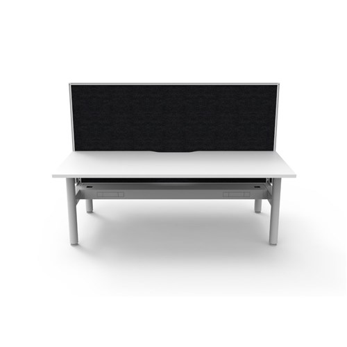 Natural White top White Satin frame. Double sided workstation with screen and cable tray.. Overall Dimensions: 1800W x 1500D x 1330mmH. Desk Per User Dimensions: 1800W x 750D x 730mmH. Height With Screen: 1330mm. E0 rated 25mm top with rigid edging and 50mm diameter scallop cut out to rear. Powder coated underframe. Adjustable levelling feet. Can be customised with optional accessories like cable management solutions and privacy screens. 10 Year Manufacturer's Warranty. Delivery, installation and assembly charges may apply to furniture. Please enquire to confirm.