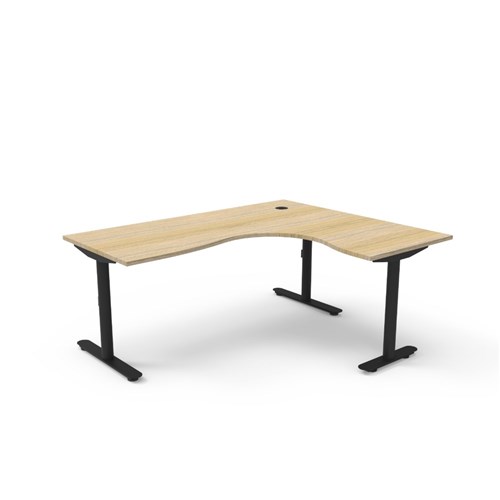 Natural Oak top Black Satin frame. Dimensions: 1800W x 1500W x 750D x 730mmH. E0 rated 25mm top with rigid edging and 80mm diameter cable entry with cover. Powder coated underframe. Adjustable levelling feet. 10 Year Manufacturer's Warranty. Delivery, installation and assembly charges may apply to furniture. Please enquire to confirm.