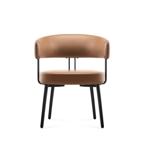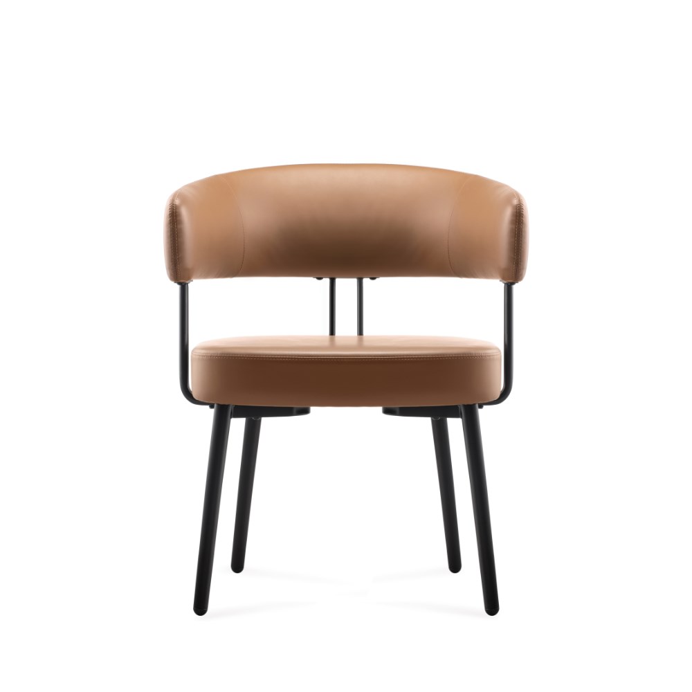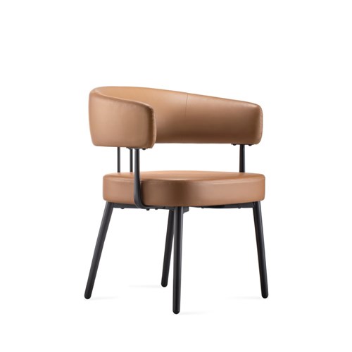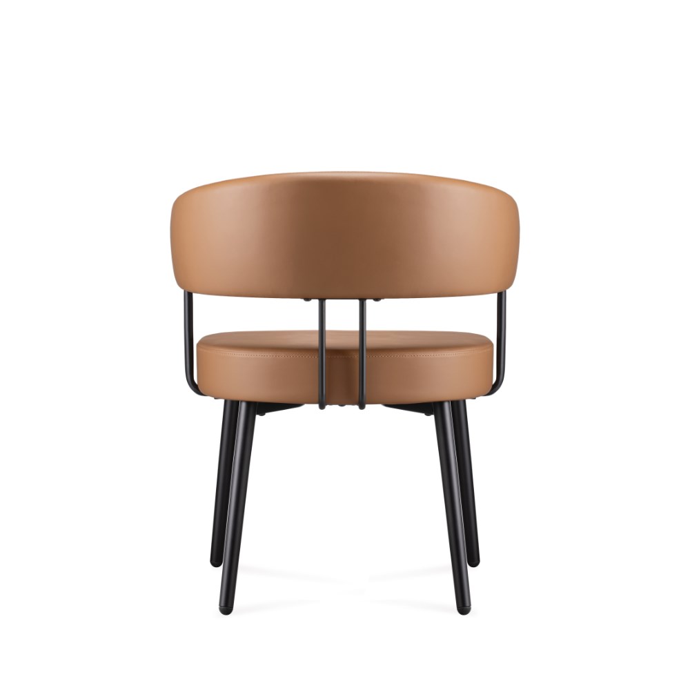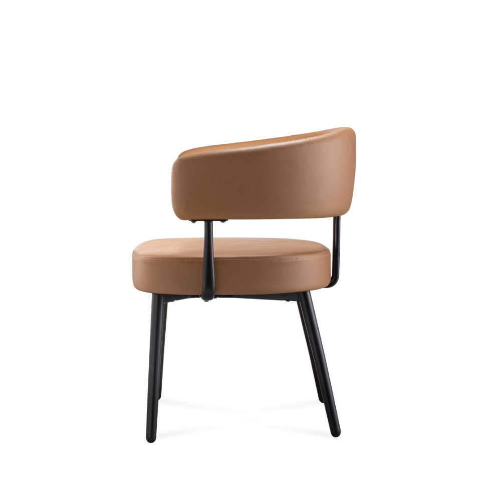 • Robust steel 4 leg frame finished in black powder coat Amber PU leather seat.