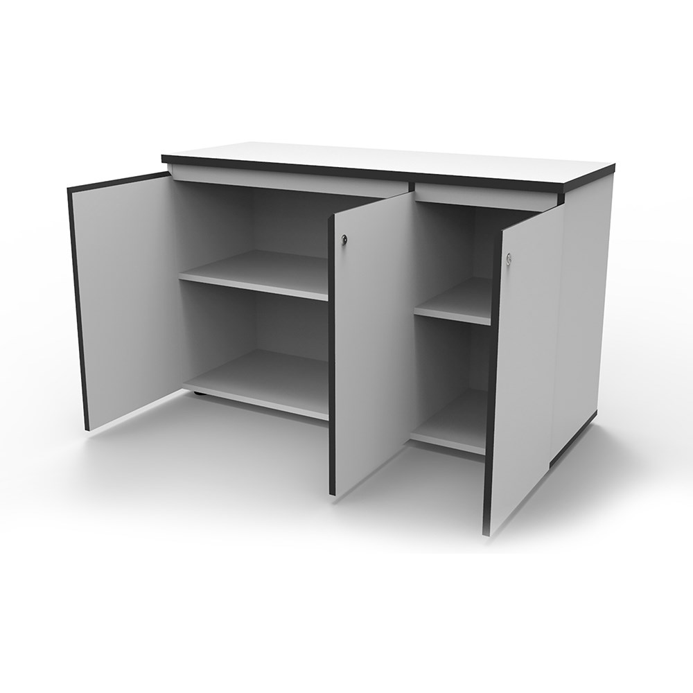 Rapidline Infinity Swing 3 Door Cupboard 1200W x 450D x 730mmH White With Black Edge