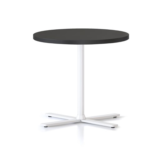 Dimensions: 500mm Diameter x 457mm High. 25mm thick table top. 4 leaf cross base powder coated underframe. Adjustable leveling feet. E0 enviroboard melamine worksurface. Note: Order with 587mmH Kolo table to create a nesting pair. 5 Year Manufacturer's Warranty. Delivery, installation and assembly charges may apply to furniture. Please enquire to confirm.