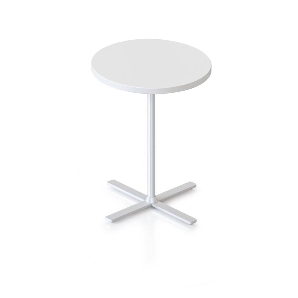 Dimensions: 500mm Diameter x 587mm High. 25mm thick table top. 4 leaf cross base powder coated underframe. Adjustable leveling feet. E0 enviroboard melamine worksurface. Note: Order with 457mmH Kolo table to create a nesting pair. 5 Year Manufacturer's Warranty. Delivery, installation and assembly charges may apply to furniture. Please enquire to confirm.