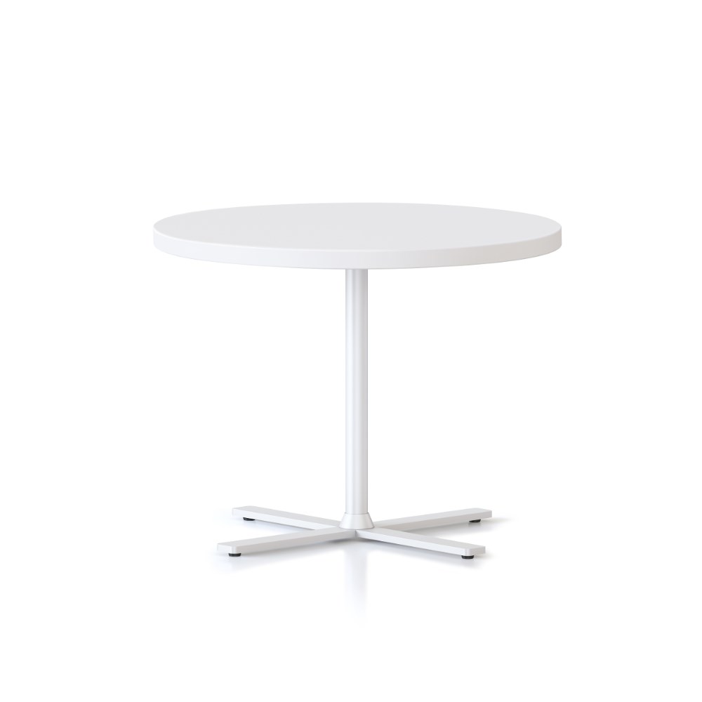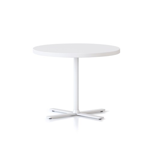 Dimensions: 600mm Diameter x 457mm High. 25mm thick table top. 4 leaf cross base powder coated underframe. Adjustable leveling feet. E0 enviroboard melamine worksurface. Note: Order with 587mmH Kolo table to create a nesting pair. 5 Year Manufacturer's Warranty. Delivery, installation and assembly charges may apply to furniture. Please enquire to confirm.