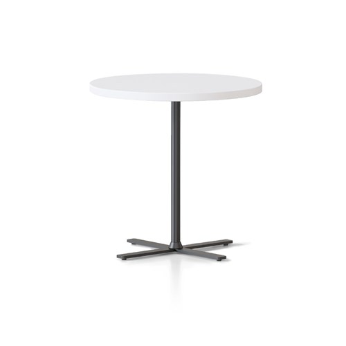 Dimensions: 600mm Diameter x 587mm High. 25mm thick table top. 4 leaf cross base powder coated underframe. Adjustable leveling feet. E0 enviroboard melamine worksurface. Note: Order with 457mmH Kolo table to create a nesting pair. 5 Year Manufacturer's Warranty. Delivery, installation and assembly charges may apply to furniture. Please enquire to confirm.