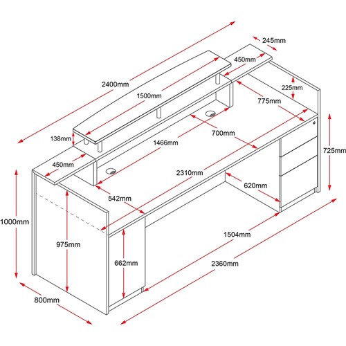 • Unit Dimensions: 2400mm W x 800mmD x 1150mmH.
