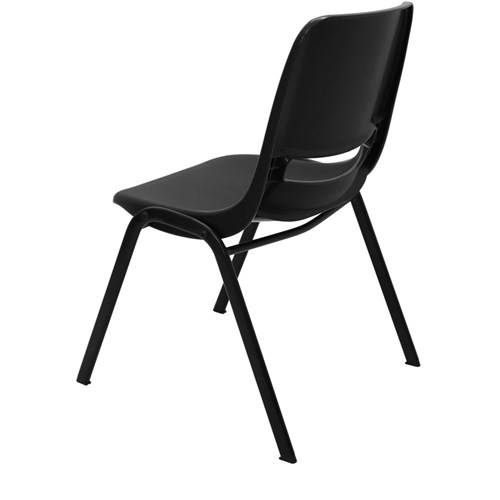 • Strong durable stacking chair with polypropylene shell and black powder coated underframe.