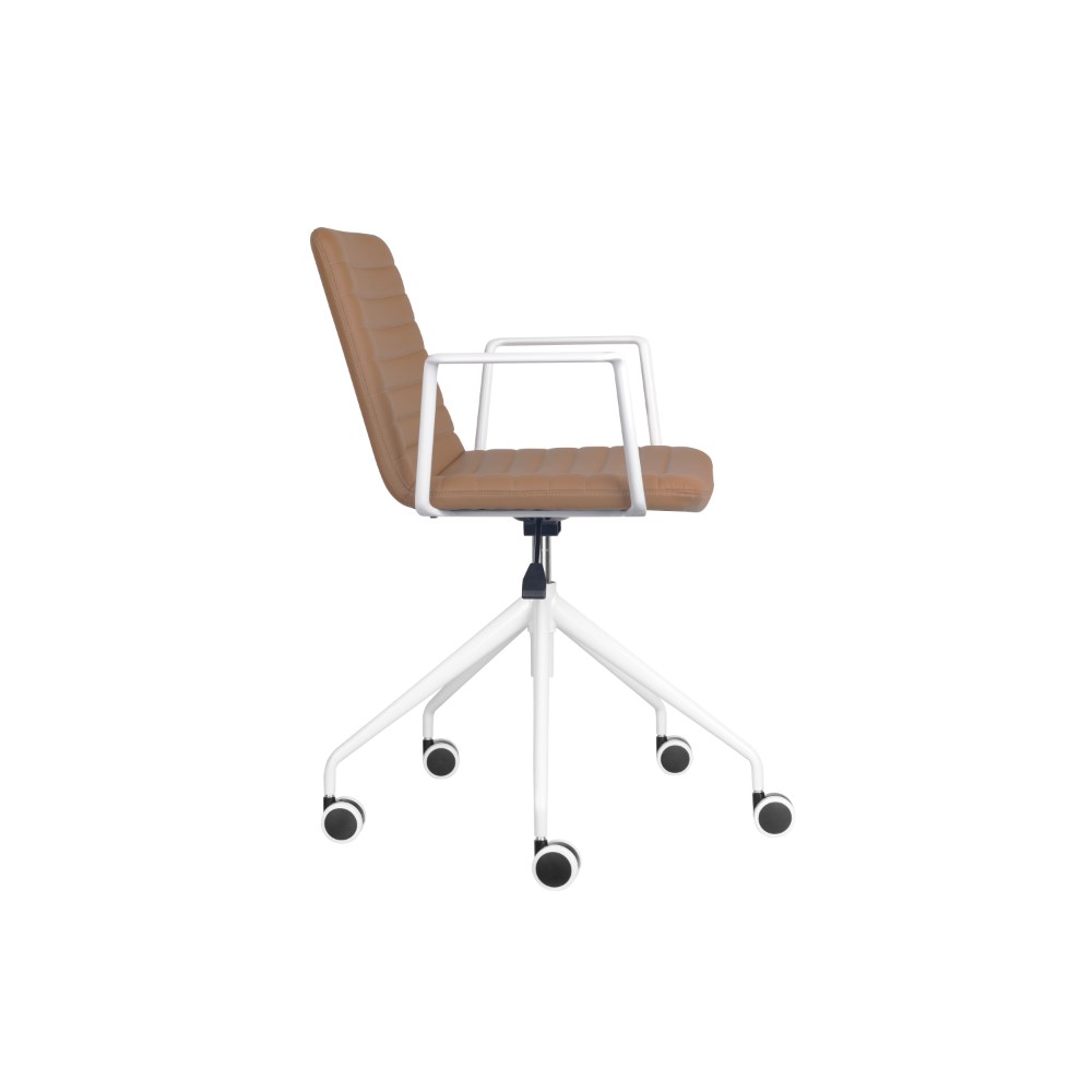 Dimensions: 630W x 630D x 830mm-875mmH. Seat Width: 450mm. Seat Depth: 420mm. Seat Height: 470mm-515mm. Back Height: 380mm. Back Width: 450mm - 370mm. Includes a set of 2 fixed height Loop arm rests finished in white powder coating. PU leather upholstery with ribbed stitching detail. 5 Star base and gas strut finished in white powder coating. 120kg weight rating. 5 Year Manufacturer's Warranty. Delivery, installation and assembly charges may apply to furniture. Please enquire to confirm.