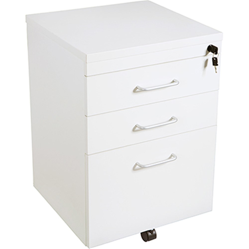 Description White 465W x 447D x 690H (mm) Lockable w/ Metal runners Fifth Wheel for Stability Maximum of 30kgs per drawer E0 enviroboard Optional lockable drawers 5 Years Manufacturer's Warranty