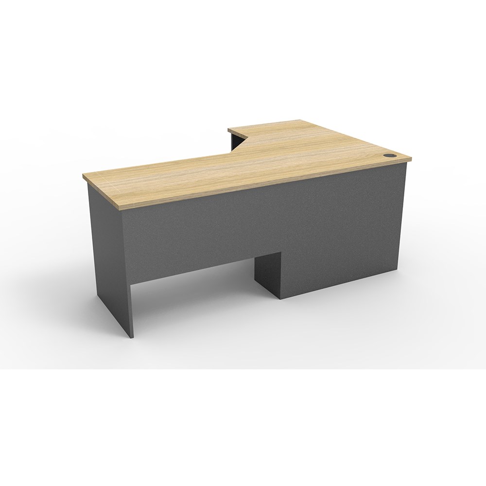Natural Oak and Ironstone in colour. 3 piece corner workstation. Matching lockable drawers, mobile pedestal and hob available as extras. E0 enviroboard. 5 Years Manufacturer's Warranty. Delivery, installation and assembly charges may apply to furniture. Please enquire to confirm.