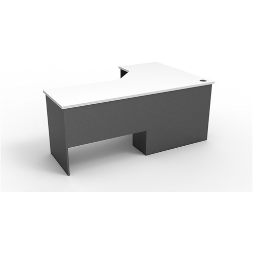 Natural White and Ironstone in colour. 3 piece corner workstation. Matching lockable drawers, mobile pedestal and hob available as extras. E0 enviroboard. 5 Years Manufacturer's Warranty. Delivery, installation and assembly charges may apply to furniture. Please enquire to confirm.