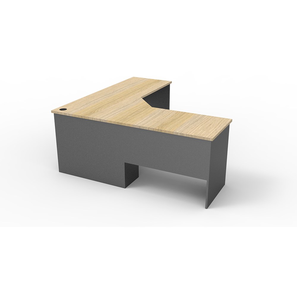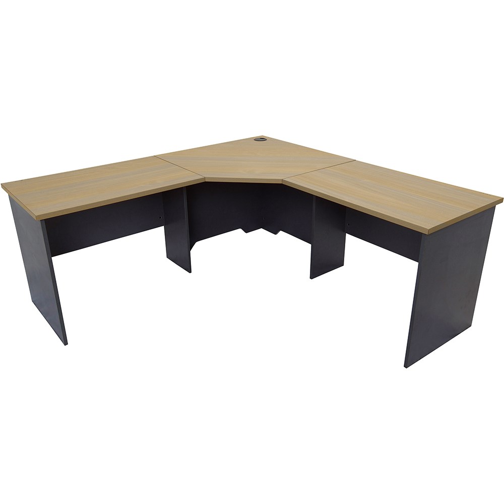 Natural Oak and Ironstone in colour. 3 piece corner workstation. Matching lockable drawers, mobile pedestal and hob available as extras. E0 enviroboard. 5 Years Manufacturer's Warranty. Delivery, installation and assembly charges may apply to furniture. Please enquire to confirm.