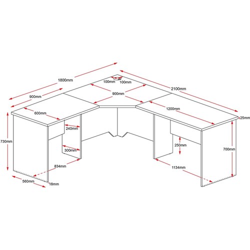 3 piece corner workstation. Matching lockable drawers, mobile pedestal and hob available as extras. E0 enviroboard. 5 Years Manufacturer's Warranty. Delivery, installation and assembly charges may apply to furniture. Please enquire to confirm.