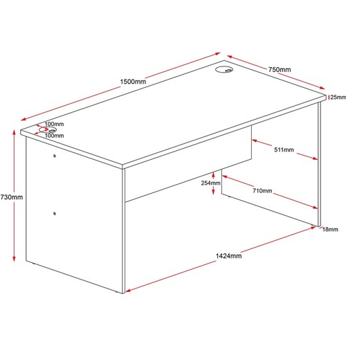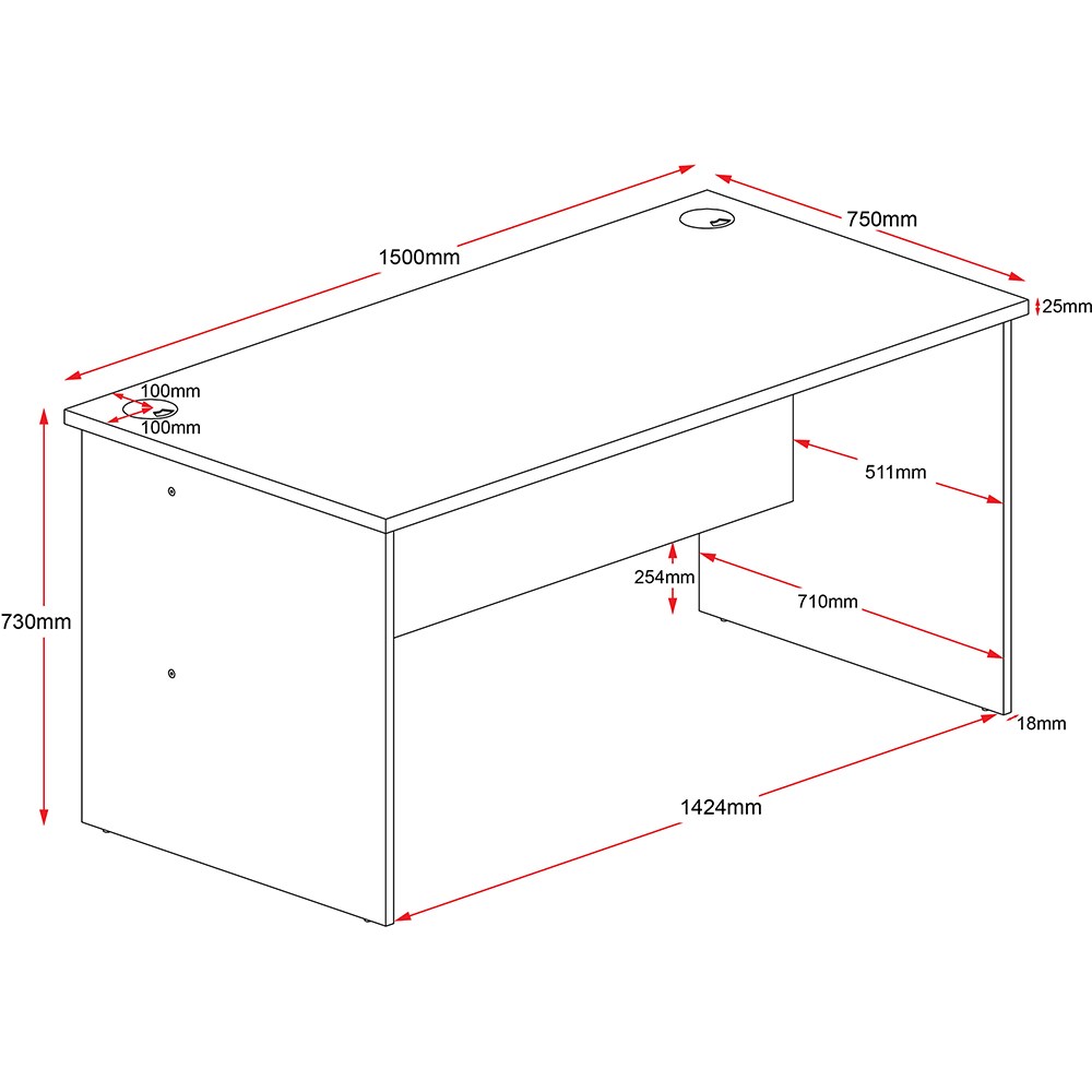 Description Oak And Ironstone 1500W x 750D x 730H (mm) 25mm tops, 18mm sides E0 enviroboard Optional lockable drawers 5 Years Manufacturer's Warranty
