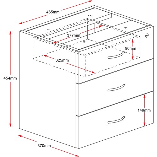 Rapidline Rapid Worker Fixed Desk Return Pedestal 3 Drawer 465W x 370D x 454mmH Ironstone