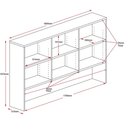 Rapidline Rapid Worker Overhead Hutch 1800W x 315D x 1070mmH Oak And Ironstone