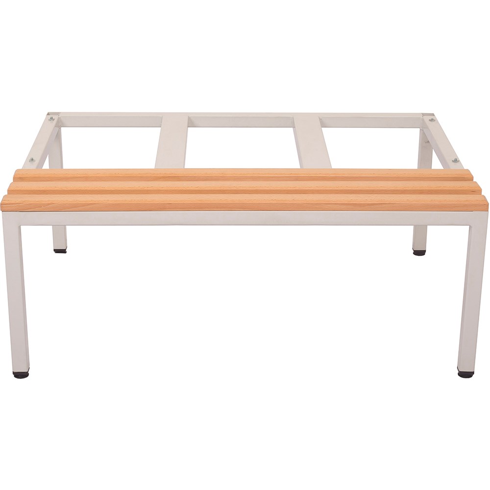 Allows the user to sit in front of the locker to change whilst allowing for cleaning underneath the unit. Seat and Stand to suit bank of 3 Lockers. Suitable for 305mm W Lockers ONLY. Single sided bench seat with light oak mod wood slats. Silver powder coated frame. Black levelling feet. 10 Year Manufacturer's Warranty. Delivery, installation and assembly charges may apply to furniture. Please enquire to confirm.