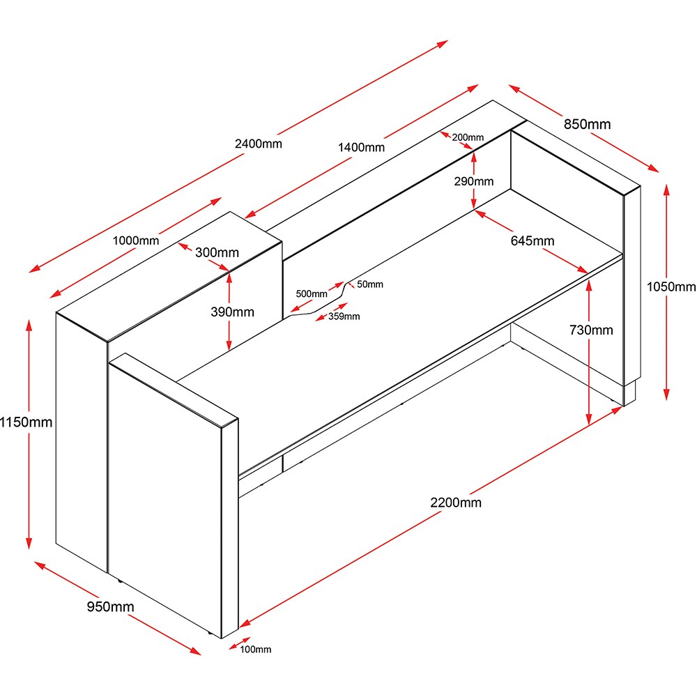 Rapidline Sempre Reception Counter 2400W x 950D x 1150mmH Natural Oak And White