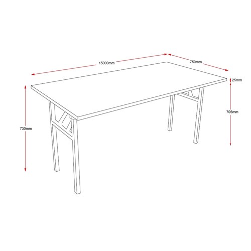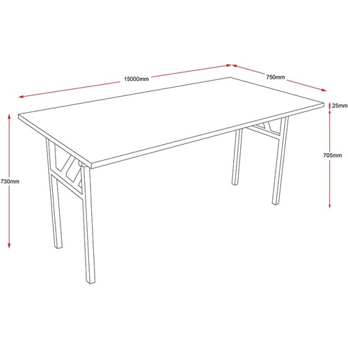 Rapidline Steel Frame Folding Table 1500W x 750D x 730mmH Cherry Top Black Frame