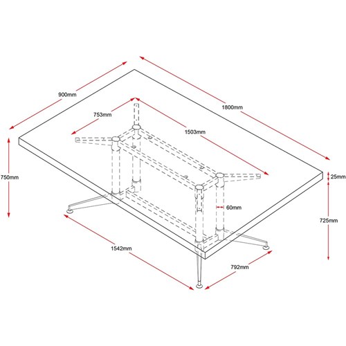 Rapidline Typhoon Boardroom Table 1800W x 900D x 750mmH Beech Top Black Frame