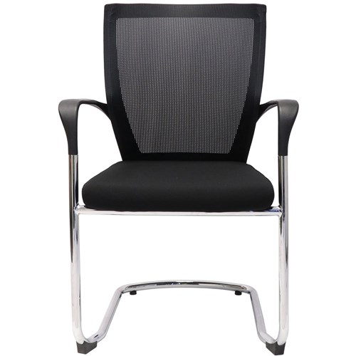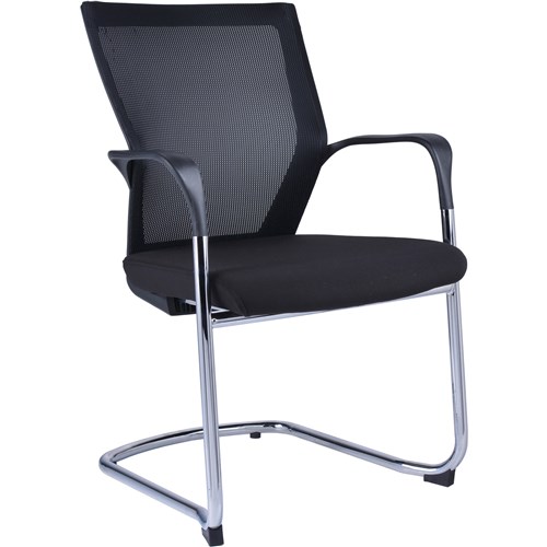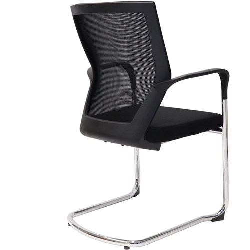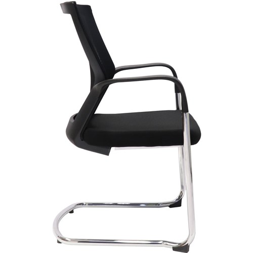Stylish designed mesh back visitor or meeting chair. Chrome cantilever underframe. 120 Kg weight rating. Fixed black PVC arch arm rests. Seat Width: 470mm. Seat Depth: 470mm. Back Height: 470mm. Seat Height: 440mm. Note: Delivery, installation and assembly charges may apply to furniture. Please enquire to confirm. 5 Year Manufacturer's Warranty.
