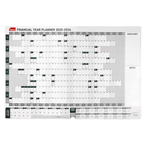 Sasco Financial Year Wall Planner 870 X 610mm Year To View Grey
