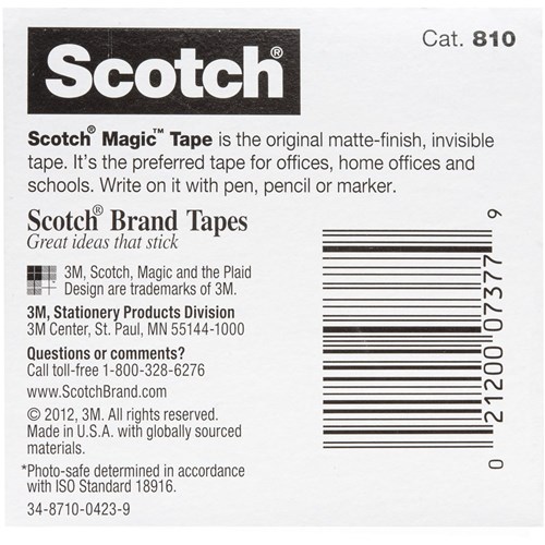 Mend it, seal it and secure it with this permanent matte tape. Non-yellowing. Can be written on and disappears when applied. Will not show up on faxes or photocopies and remains invisible over time.