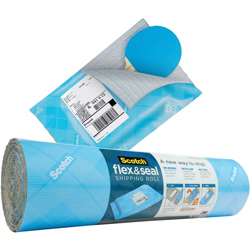 • The Scotch Flex & Seal Shipping Roll is a simpler shipping solution which gets you ship ready in only three-steps and saves you up to 50% on supplies, time and space than boxes.