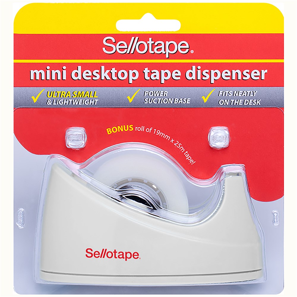 Sellotape Tape Dispenser 19mmx25m Mini Desktop Black or White Bonus Tape