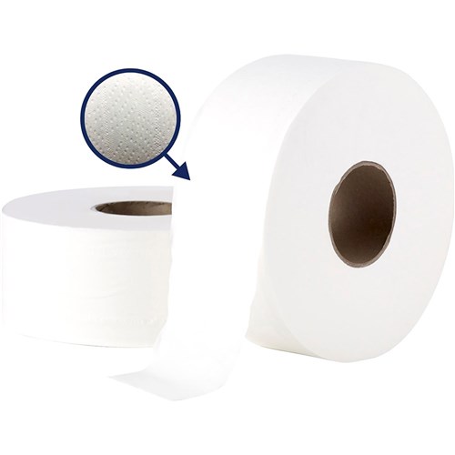 • Two layers of extra thickness with double embossing for the softness and comfort of home in a jumbo roll for high traffic areas.