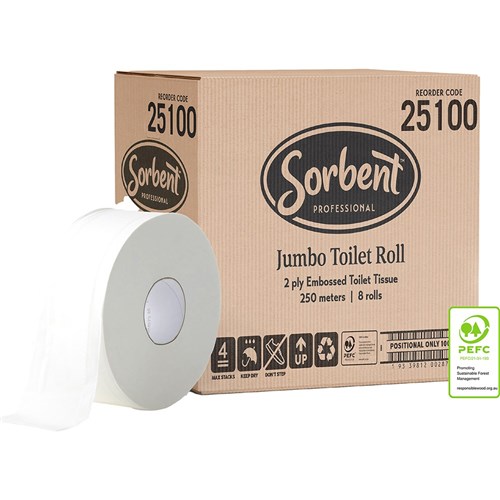 Sorbent Professional Jumbo Toilet Tissue Rolls 2 Ply 250m Carton Of 8