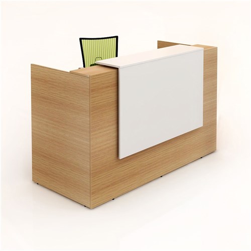 • Modern simple designed reception counter finished in Beech Melamine front and side panels with Gloss White feature panel and Matt White Melamine desktop.