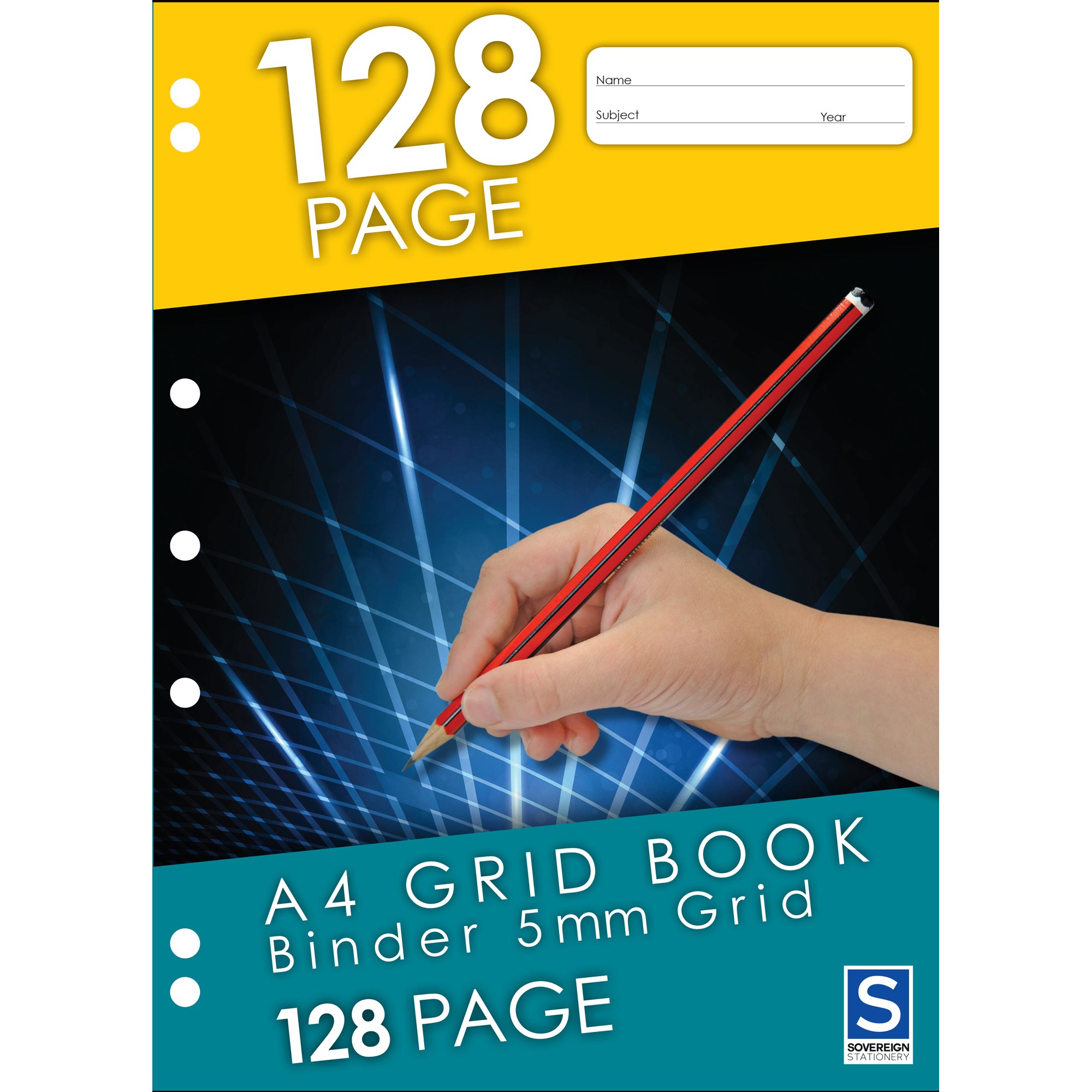 Sovereign Binder Book A4 5mm Grid 7 Hole Punched 128 Page