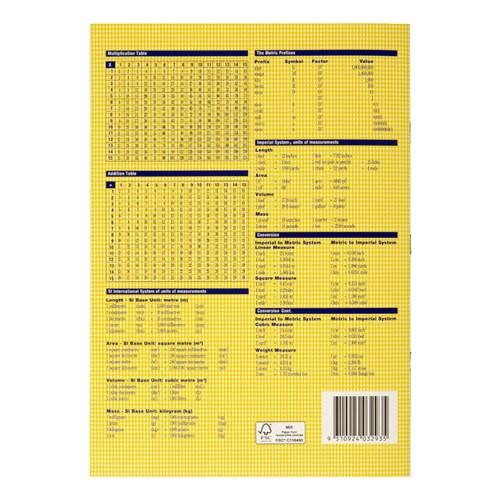 Made using only the best quality products to ensure school notes are kept neat and protected. 70gsm paper, durable gloss cover and sturdy staple binding to ensure the pages do not come loose. Includes a red ruled margin. Available in A4 with 48, 64, 96 and 128 pages. Available in 8mm Ruled, 9mm, 14mm, 18mm Dotted Thirds and Primary rulings.