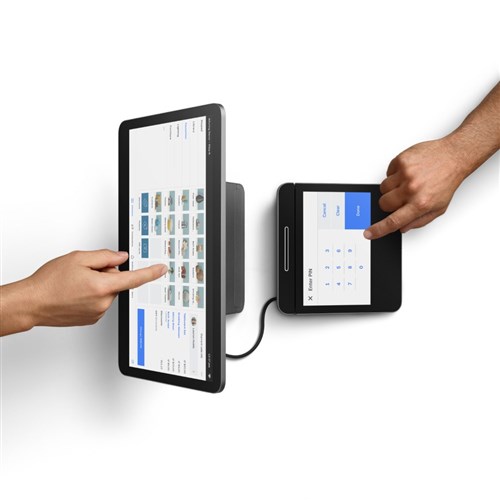 • Two back to back screens, a larger one for the retailer and another detachable one for the customer to process their payments.