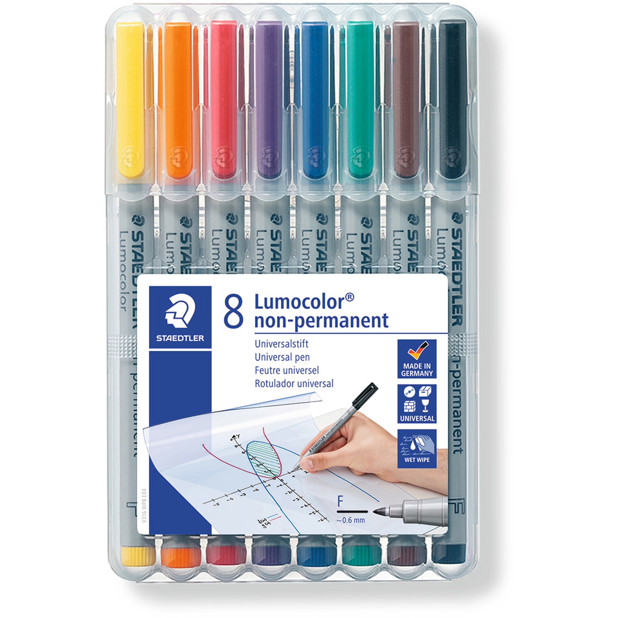 Staedtler 316 Lumocolor Pens Non-Permanent Fine 0.6mm Wallet of 8