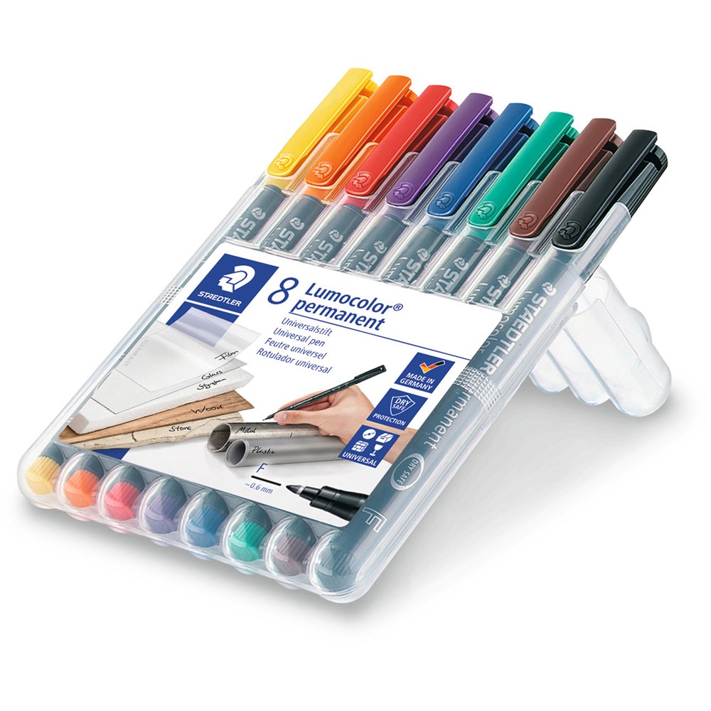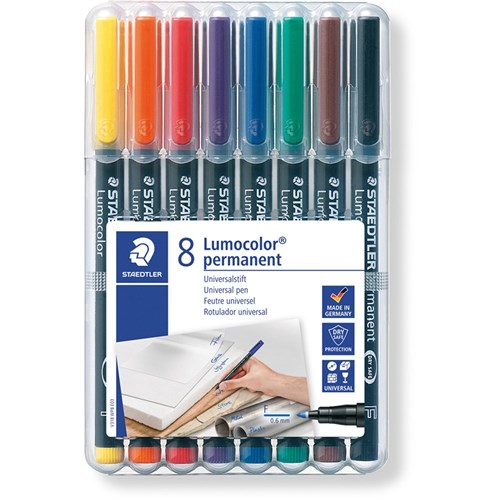 Staedtler 318 Lumocolor Pen Permanent Fine 0.6mm Assorted Wallet of 8
