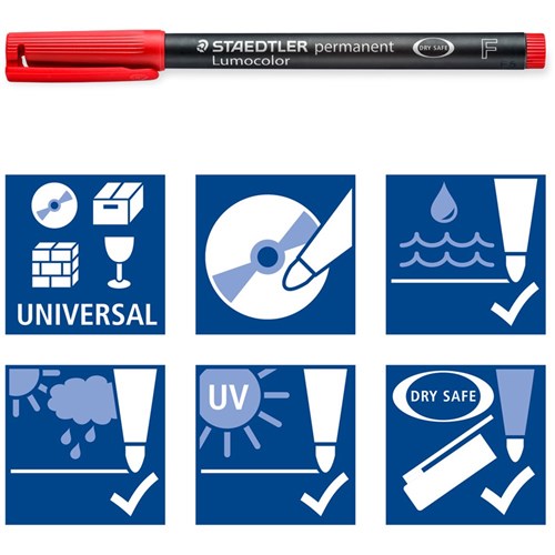 Ideal for writing on smooth and glossy surfaces such as film, glass, ceramic, plastic, metal, paper, courier bags, wood, fabric or CDs, DVDs & OHPs. Excellent smudge-proof & waterproof qualities on almost all surfaces. Wallets convert into convenient desk stands. DrySafe ink can be left uncapped for days without drying out. Available in boxes of 10 or an assorted wallet of 4, 6 or 8.