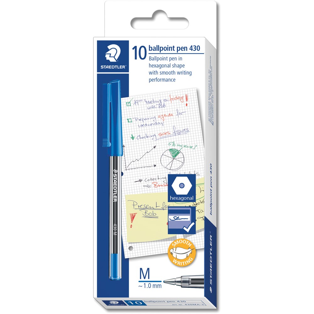 Staedtler 430 Stick Ballpoint Pen Medium 1mm Blue