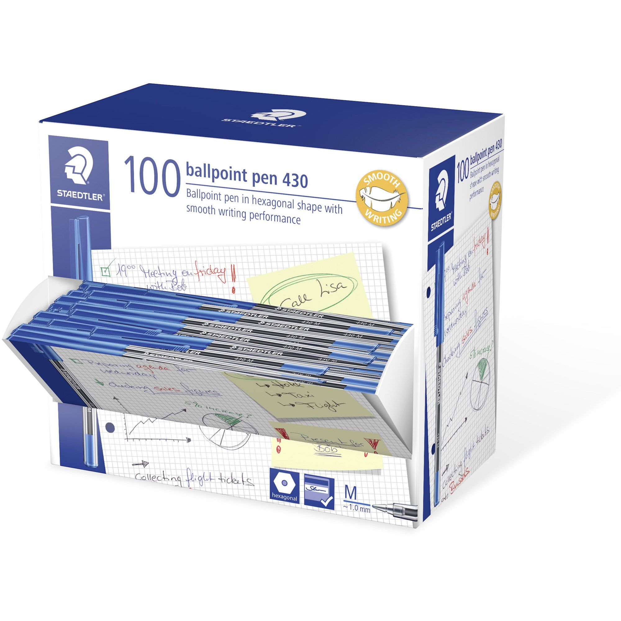 Staedtler 430 Stick Ballpoint Pens Medium 1mm Blue Box of 100