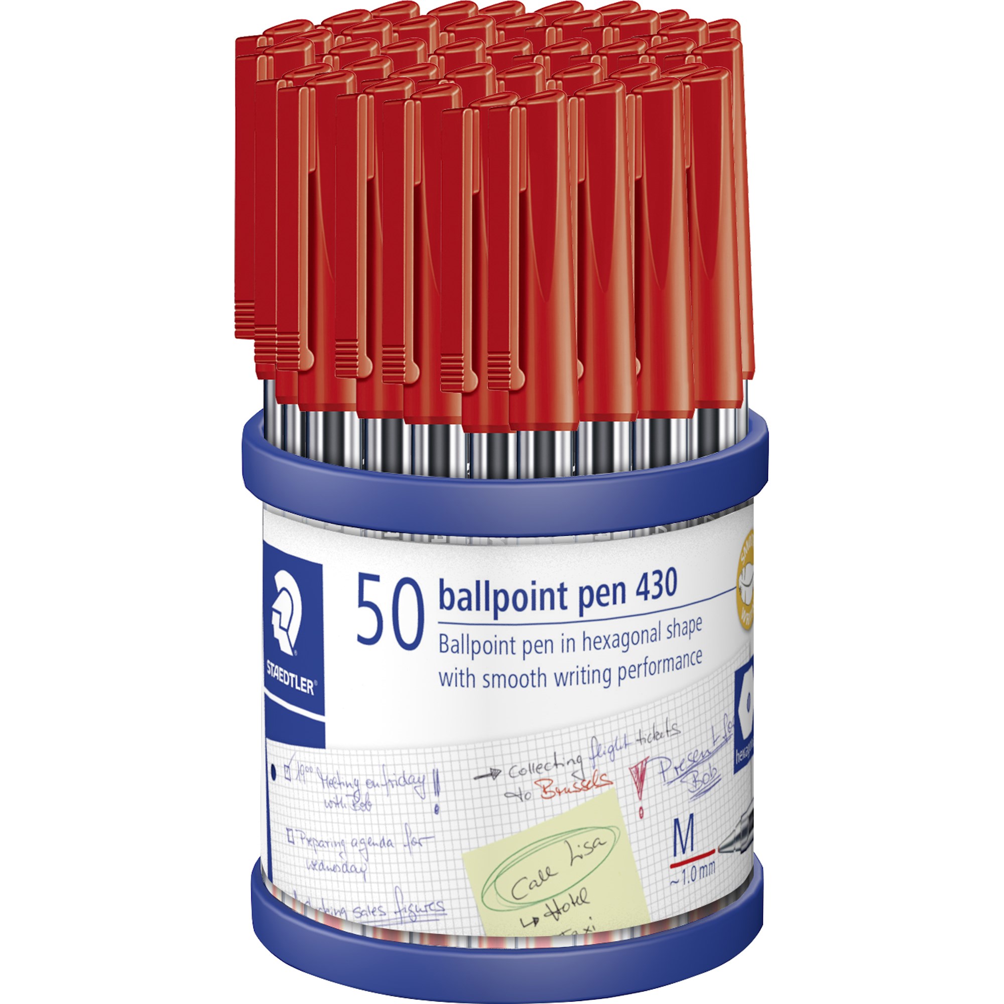 Staedtler 430 Stick Ballpoint Pens Medium 1mm Red Cup of 50