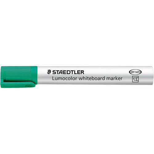 Green marker can be dry-wiped from whiteboards and surfaces such as glass and porcelain without leaving a trace Airplane-safe Fast drying, low odour and with convenient clip cap Dry safe Stand-up staedtler box converts to convenient desk set Refillable xylene and toluene free ink Polypropylene barrel and cap guarantee long service life Chisel tip line width approximately 2 - 5mm