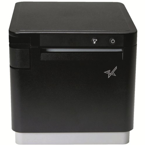 This printer is ideal for countertops. It has a high speed of 250 mm per second. It offers a paper-saving feature to reduce its environmental impact, as well as print-flat technology to ensure high quality printed receipts. It is compatible with thermal rolls measuring 80 x 80 mm and 57 x 57 mm. It is compatible with iOS, iPadOS and Android. It is a compact, 3-inch front-loading and front-exiting printer in black. It has a flat-top design and a splash-proof enclosure to protect the printer from hazards like water, debris, and insects when used outdoors or in harsh environments. You can bundle this with a variety of other items in your workspace to create a streamlined point of sale setup. It supports a Cash Drawer connection (Port-RJ-11). 1 Year Manufacturer's Warranty.