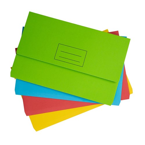 Made From Heavy Duty 230Gsm Cardboard For Durability Generous 30mm Gusset Which Holds Up To 300 Sheets Of 80Gsm Paper Large Front Flap Secures Your Documents And Keeps The Wallet Fully Closed Protecting The Documents Or Items Inside Front Name Panel Allows For Easy File Contents Identification Suited To Store A4 And Foolscap Sized Documents Can Easily Fit Into A Standard Filing System Colour: Assorted Pack Of Five Colours Includes; Purple, Lime, Red, Yellow And Blue