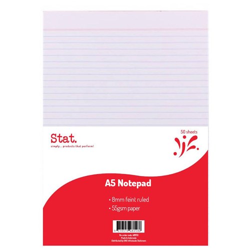 Stat Notepad A5 8mm Ruled 55Gsm White 50 Sheet