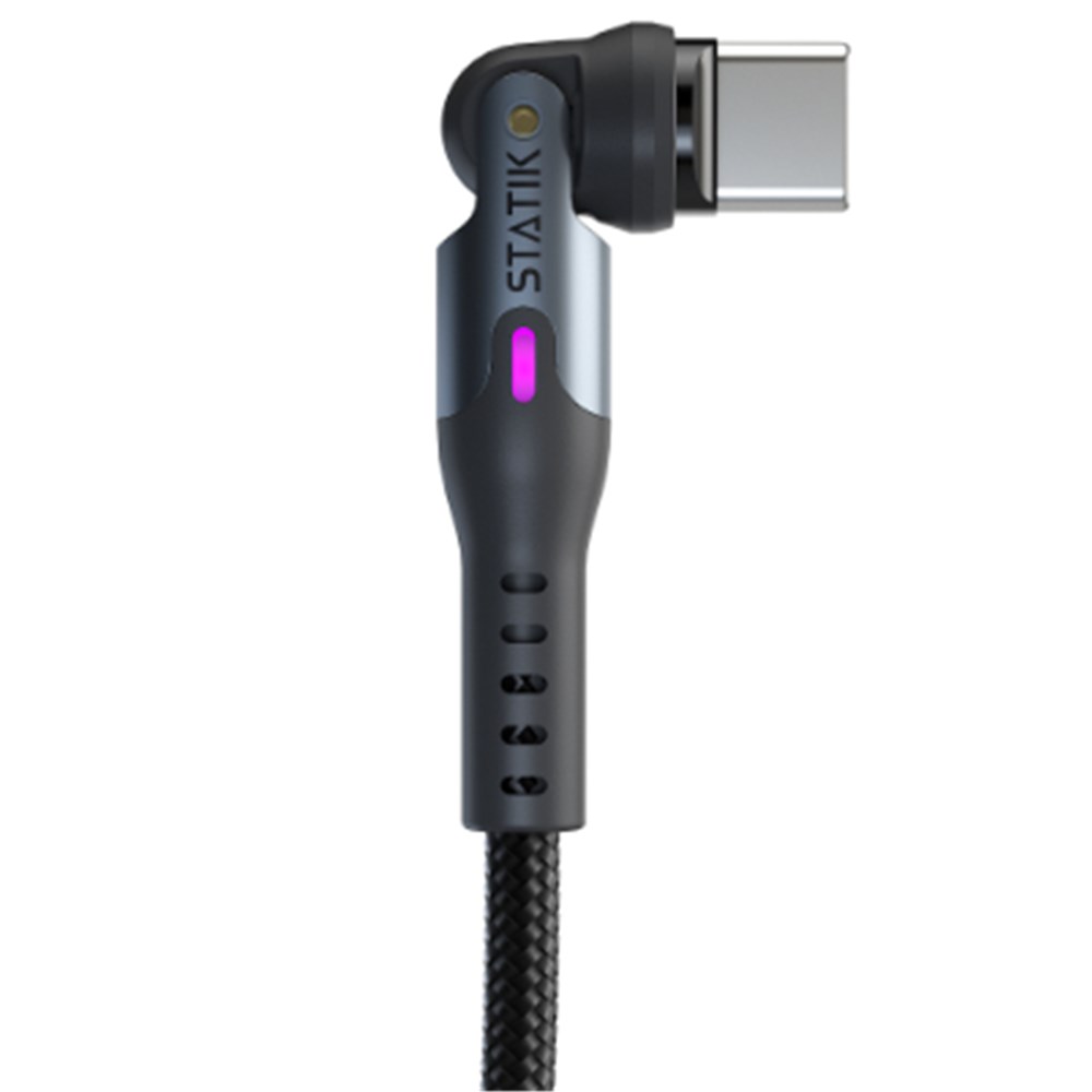 Unique rotating connector stays out of your way. Patented rotating head. Military grade nylon cable. Universal cable includes 3 magnetic tips, USB-C, Apple Compatible, Micro USB. Charge light indicator. Additional USB-A adaptor included. Long rubber cable transition lasts up to 20 x longer than typical plastic cables. BlitzCharge 100W with USB-C, 18W with USB-A adaptor. 480mb/s data transfer. 2 Year Manufacturer's Warranty.