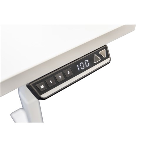 White top white frame. Sleek, modern European design. 25mm thick, white melamine finish worktop, with cable port. Ultra-quiet electric powered dual motor. Lift capacity - Deluxe 122kg. Speed 35mms. Safety - Auto reverse on both up and down movements. 3 stage rectangular leg. One touch operation with 3 programmable settings in addition to up-down. Also available with a black frame. 10 Year Manufacturer's Warranty. Delivery, installation and assembly charges may apply to furniture. Please enquire to confirm.