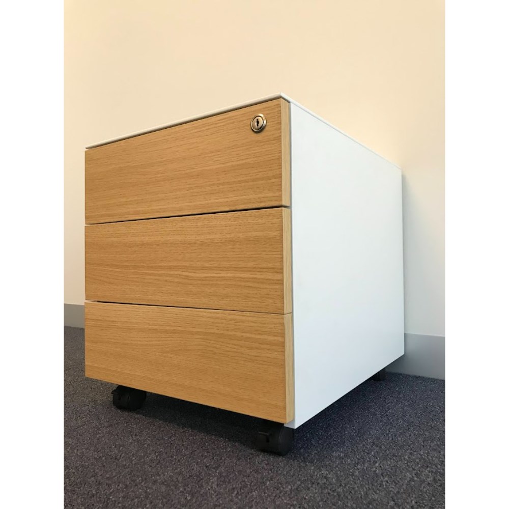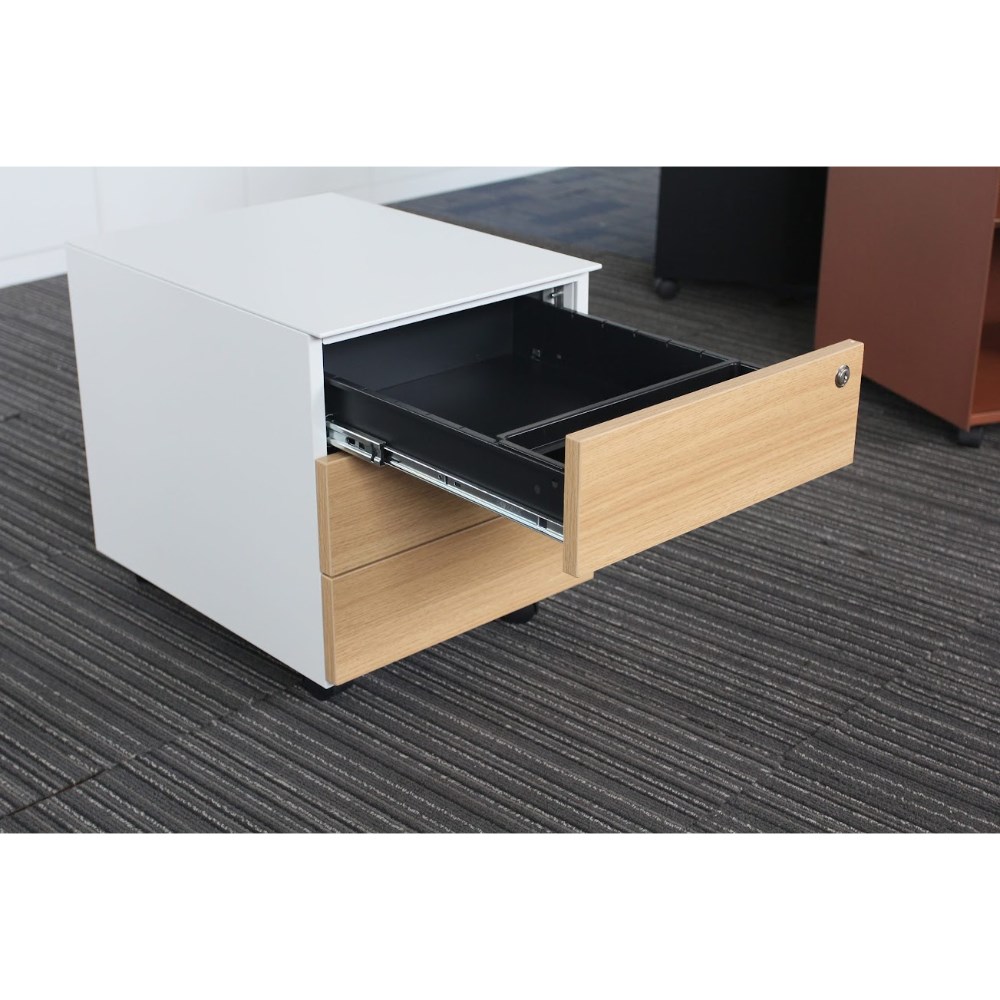Laminate timber doors. 5mm slim carcass. Top box drawer includes a pencil tray. Fifth castor wheel to ensure stability for anti-tilt. Full extension ball bearing runners fitted to allow full drawer access. Lockable castors to secure unit in place. Fitted with a barrel exchange lock. Key lock as standard, digital lock option available. 10 Year Manufacturer's Warranty. Delivery, installation and assembly charges may apply to furniture. Please enquire to confirm.